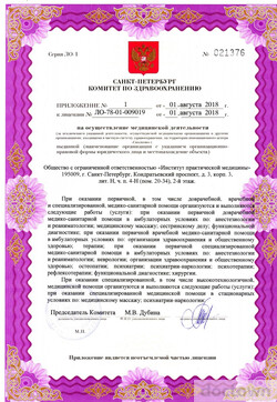 На базе клиники«Институт практической медицины оказывается помощь пациентам, страдающим от зависимостей (алкогольной, наркотической, пищевой, игровой, эмоциональной). Прием проводится по предварительной записи.